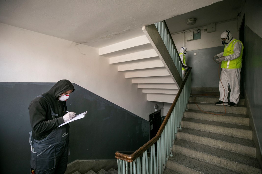 The disinfection of 200 collective residential entrances managed by the Public Housing Enterprise (PHE) has started as an additional protective measure to prevent the spread of COVID-19.