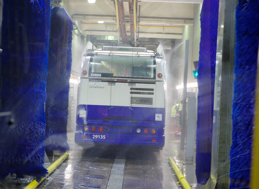 Every tram, trolleybus or bus is cleaned up carefully after its return to the depot. Intensive cleaning was started on February 28. All handrails, window frames, walls are cleaned up, floors and other surfaces are swept and washed. To reduce the spreading of COVID-19 as much as possible, at the beginning of March we also started to disinfect public transport from outside.