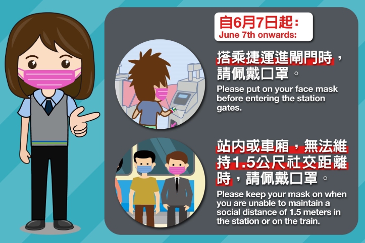 With the subsiding of the COVID-19 threat in Taiwan and in compliance with the directives of Taiwan Centers for Disease Control, the Taipei Rapid Transit Corporation (TRTC) announced that it will be easing mandatory face mask requirements for MRT riders starting June 7.